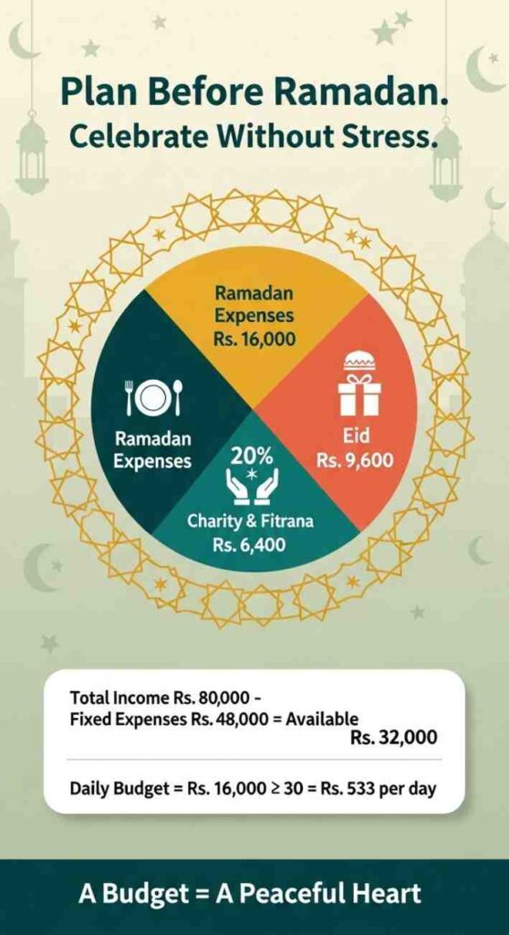 That covers Iftar, Sehri, and any extra daily expenses. See? Simple. Just write, calculate, and follow.